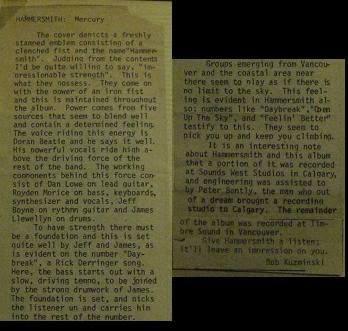 Hammersmith, prior to me, and award winning band Streetheart with me March